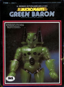 Feel the power burning behind those dark eyes! Green Baron and King Atlas have some of the more ominous box art in the Micronauts line. Too bad these were released only in Italy by Gig. With the remolded head and the more somber colors, I think Green Baron would have been a real hit here in the States.
