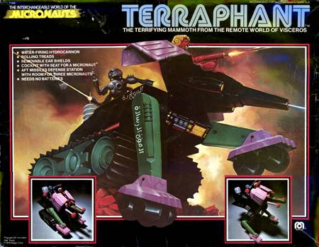 Run screaming in terror as Terraphant rolls off the box and overtakes you with all it's water squirting might! Wow! What a toy! And some of the best box art that I've ever seen! This water squirting beast was originally intended to have rocket-firing tusks as well, but alas, it was not to be.